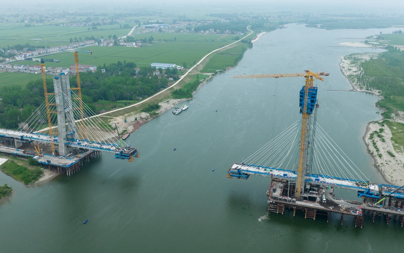 沪渝蓉高铁钟祥汉江特大桥主塔全部封顶