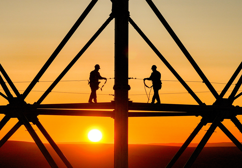 眼下,张北—胜利1000千伏特高压输电交流项目工程内蒙古段组塔工作进入高峰阶段,施工人员抢抓工期,力争早日完成组塔任务。